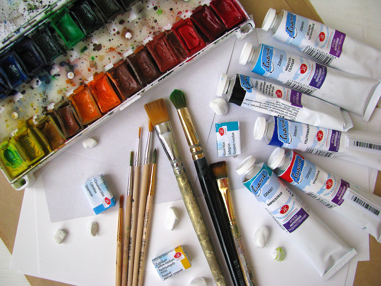 В статье я расскажу о четырех наиболее часто используемых типах художественной краски. Это гуашь, акварель, акриловая и масляная краска.